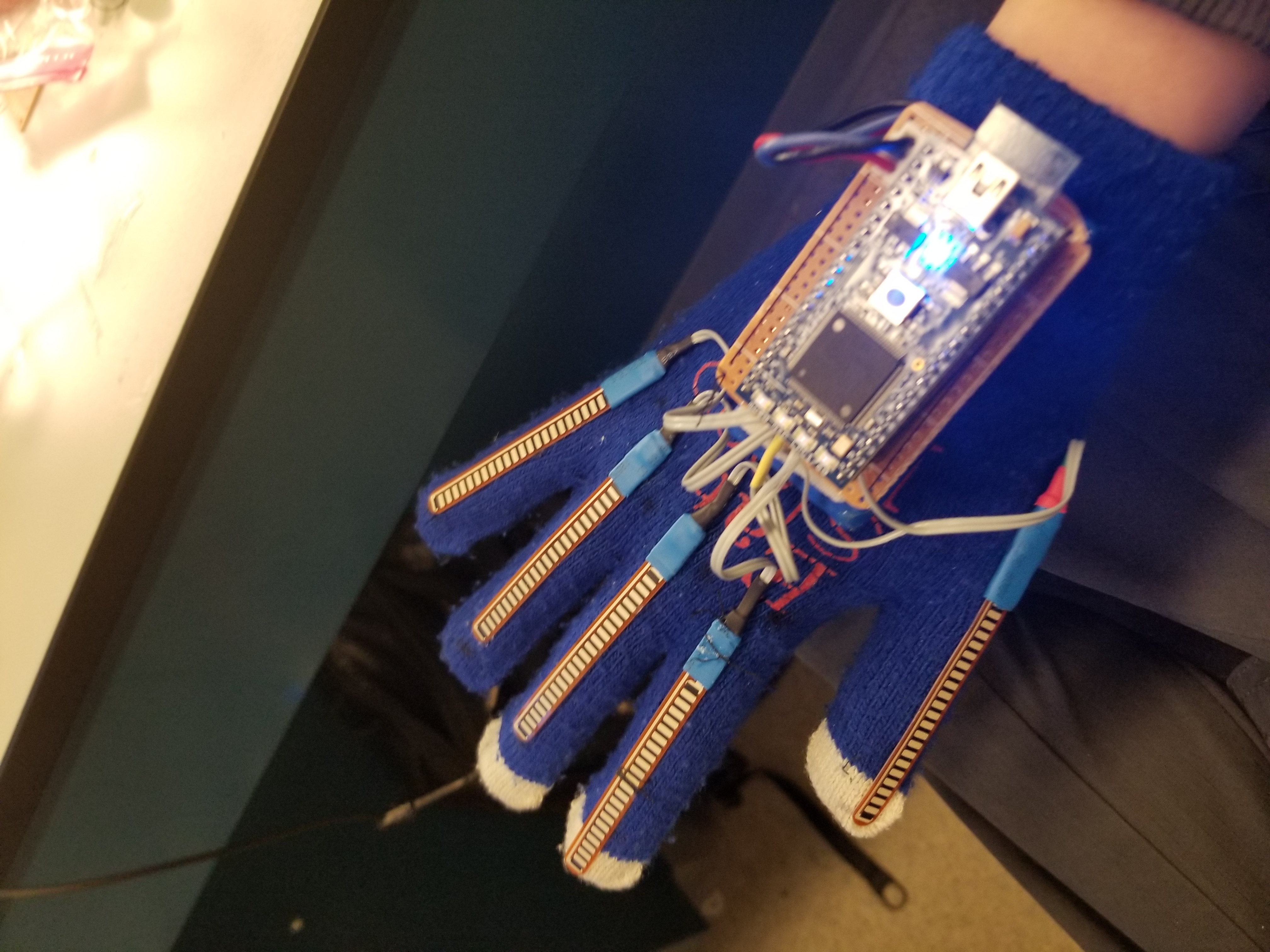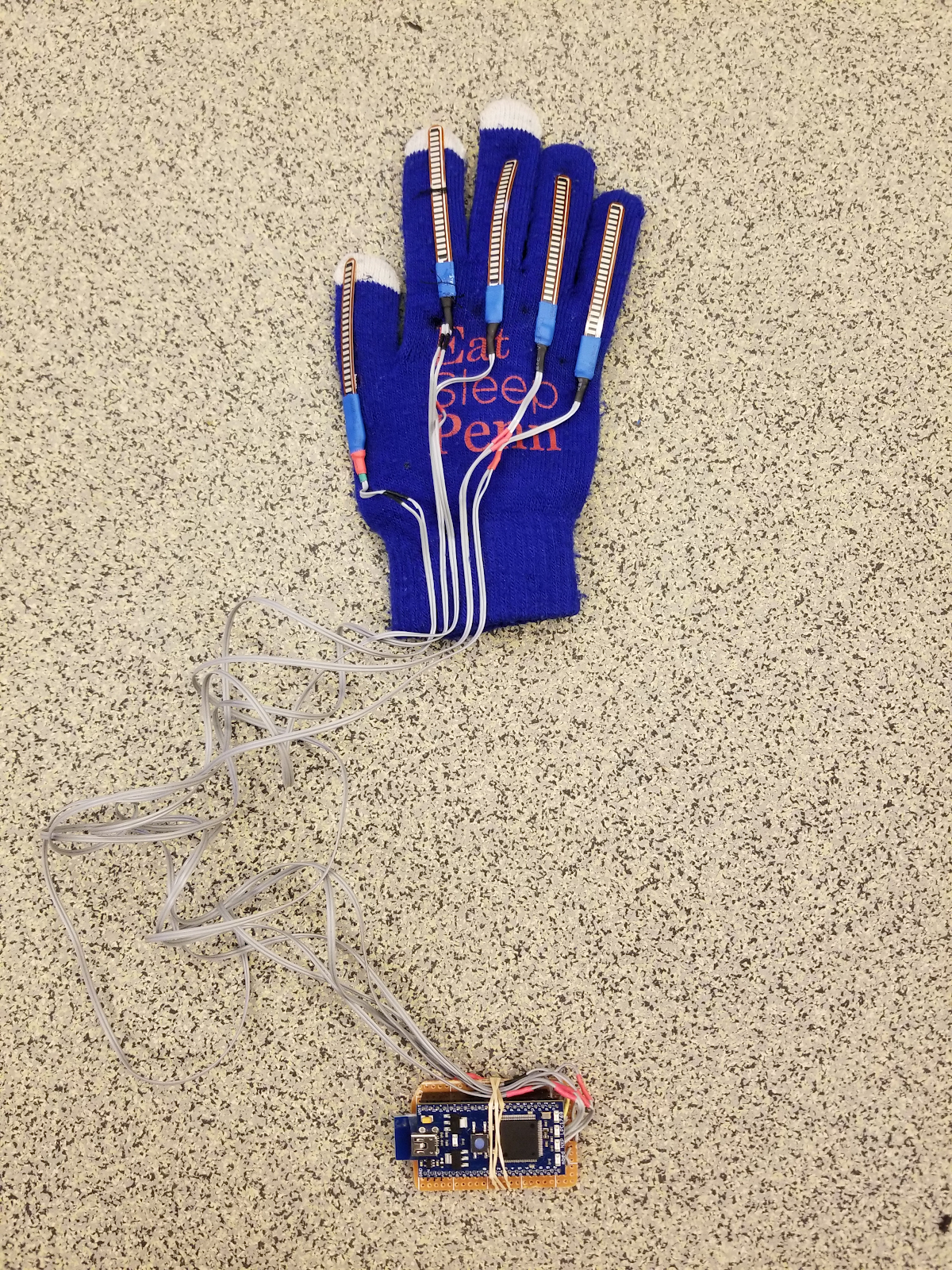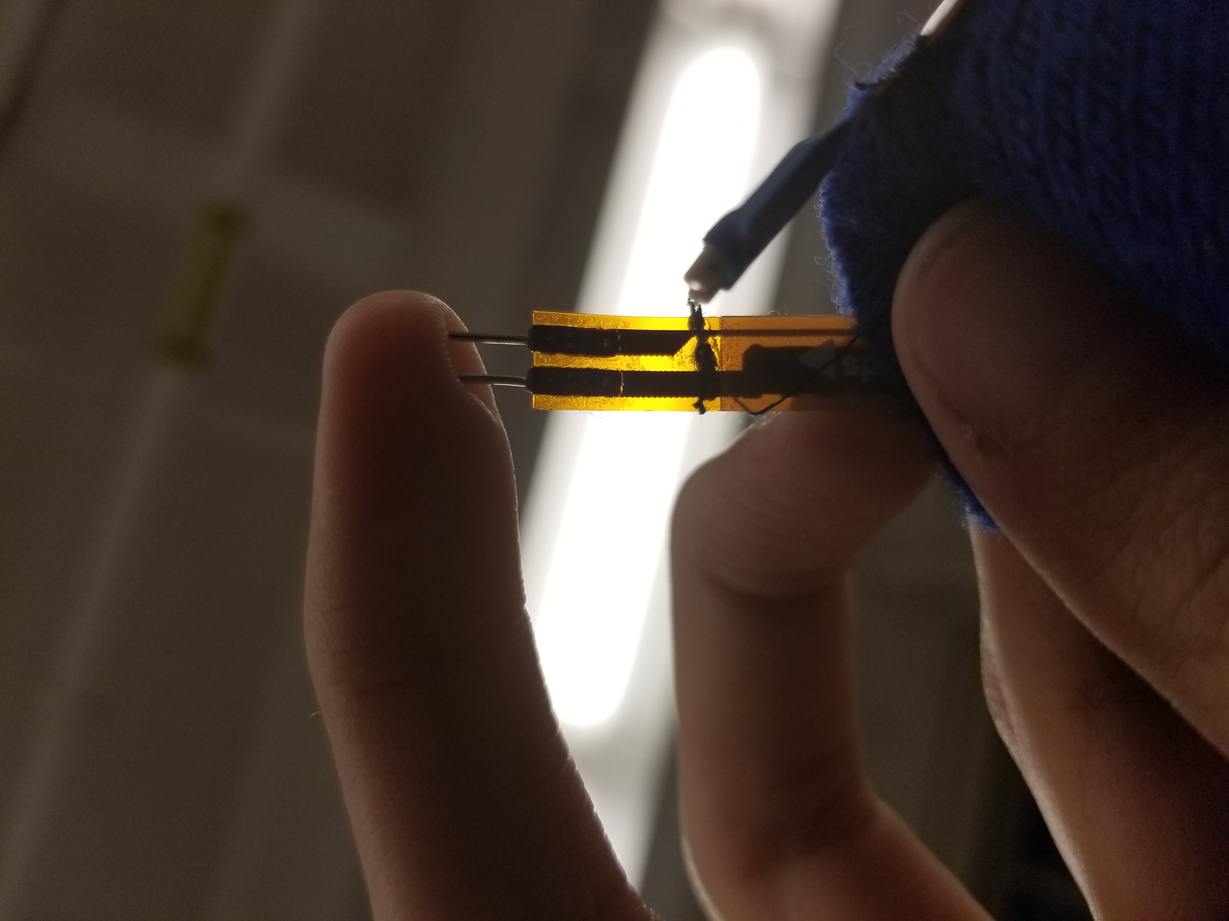 We connected the sensors to a multimeter to measure the resistance and check if it changed when we flexed which it did.