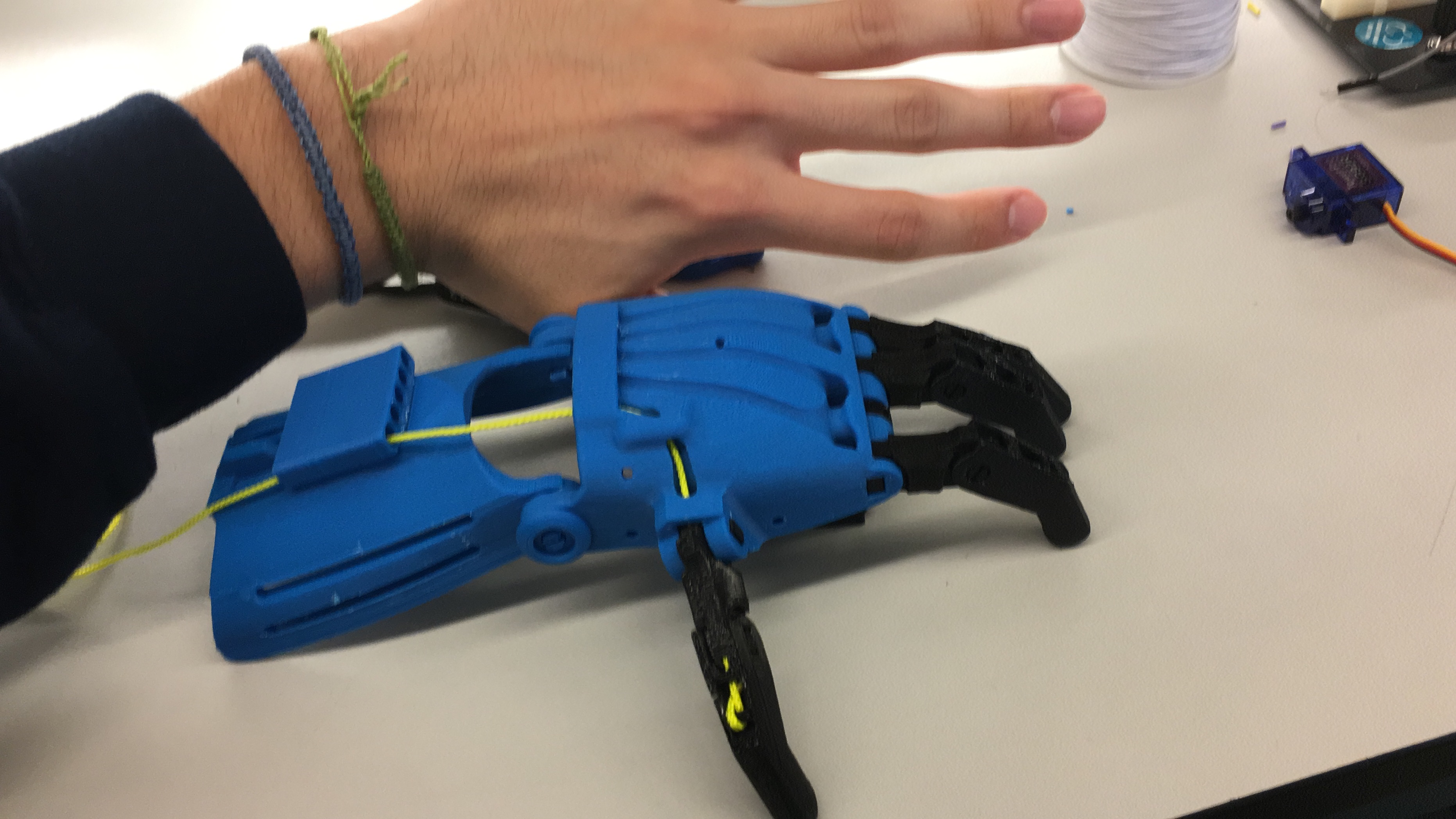 After adjusting some of the strings, adding rubber bands and silicone to the prosthetics finger tip and added a button that freezes the hand in position we accomplished the following: