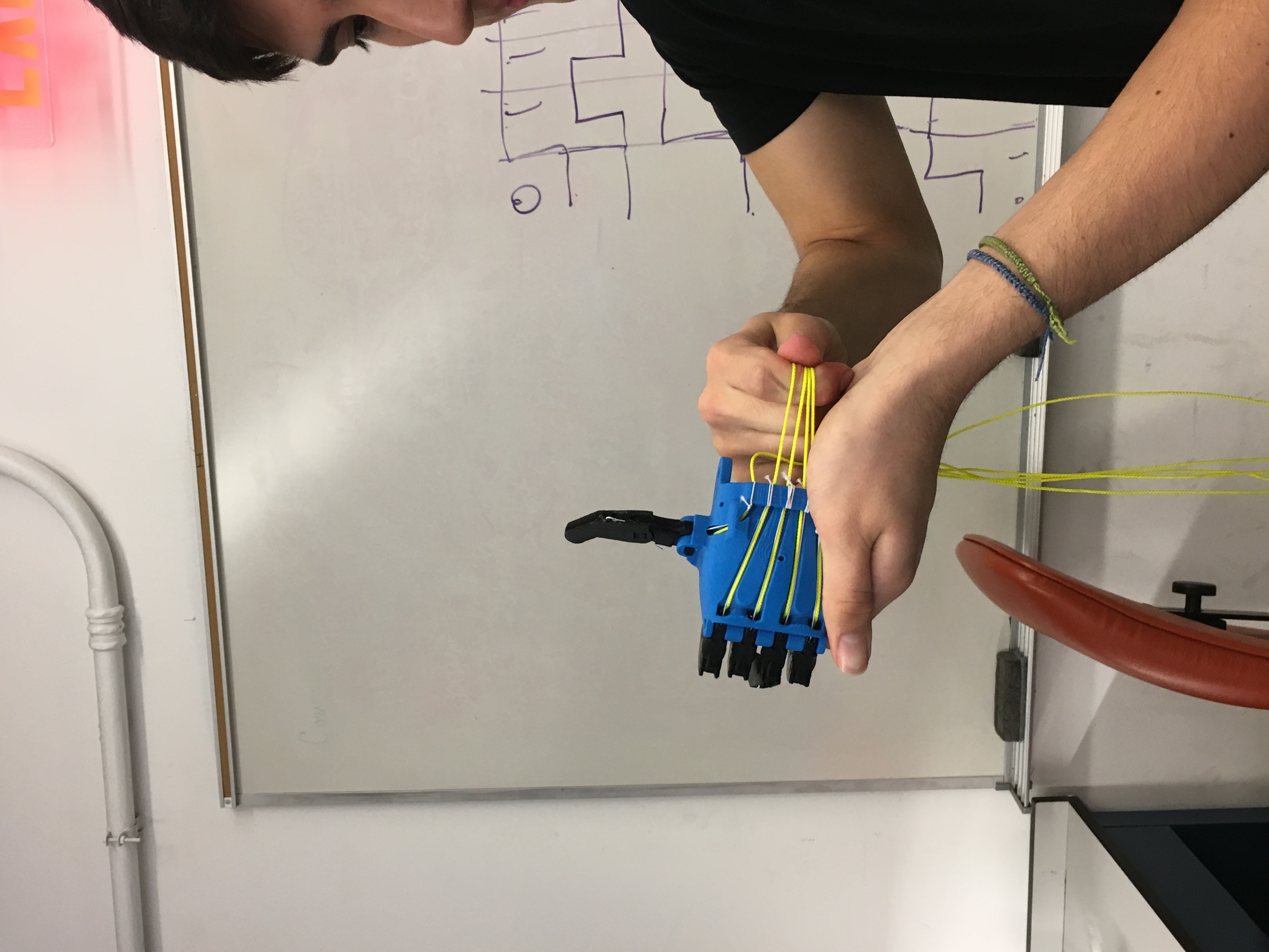 We finished connecting all the fingers with the strings necessary and were able to contract the fingers properly.